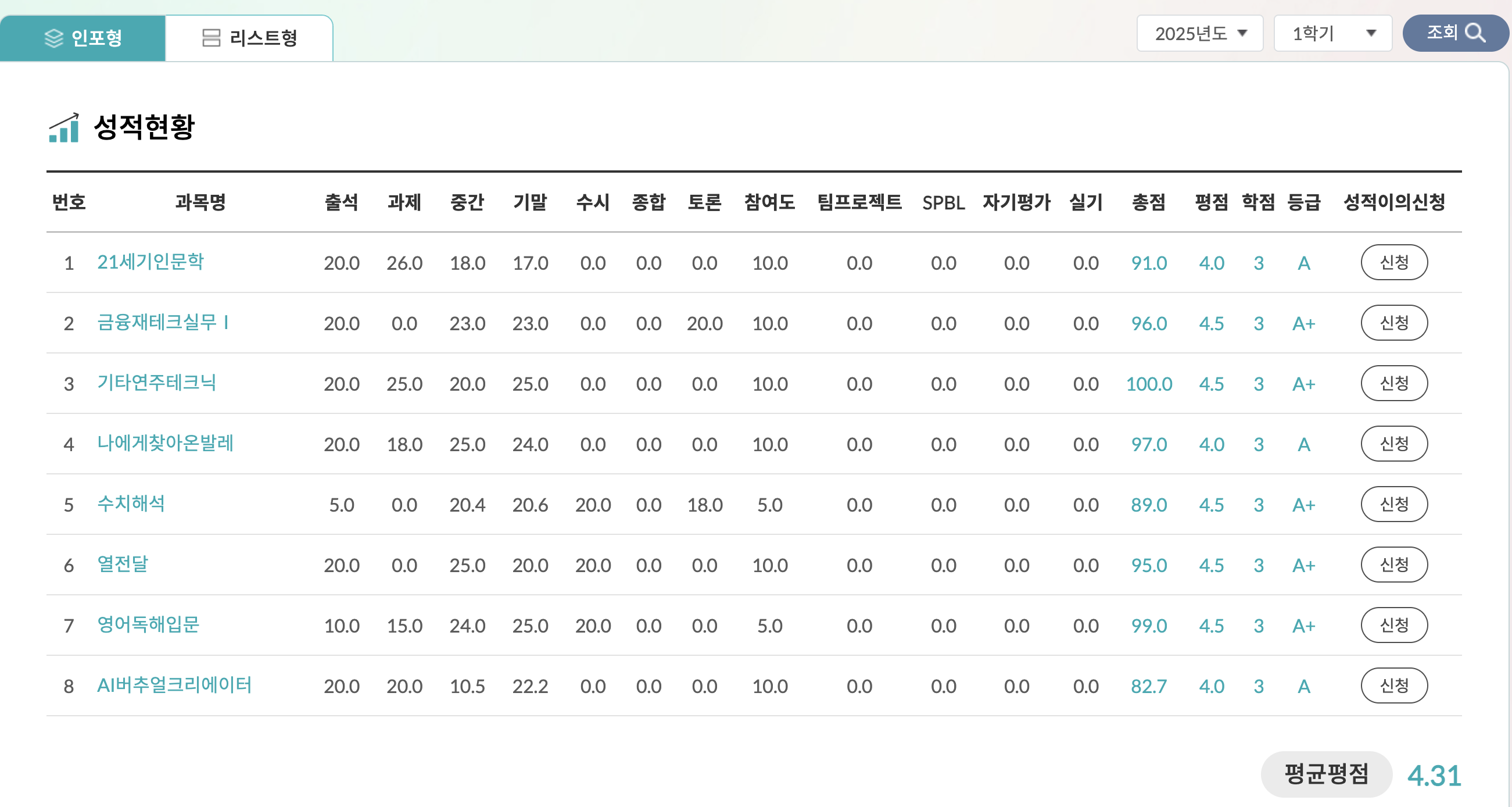 2025년 1학기 성적