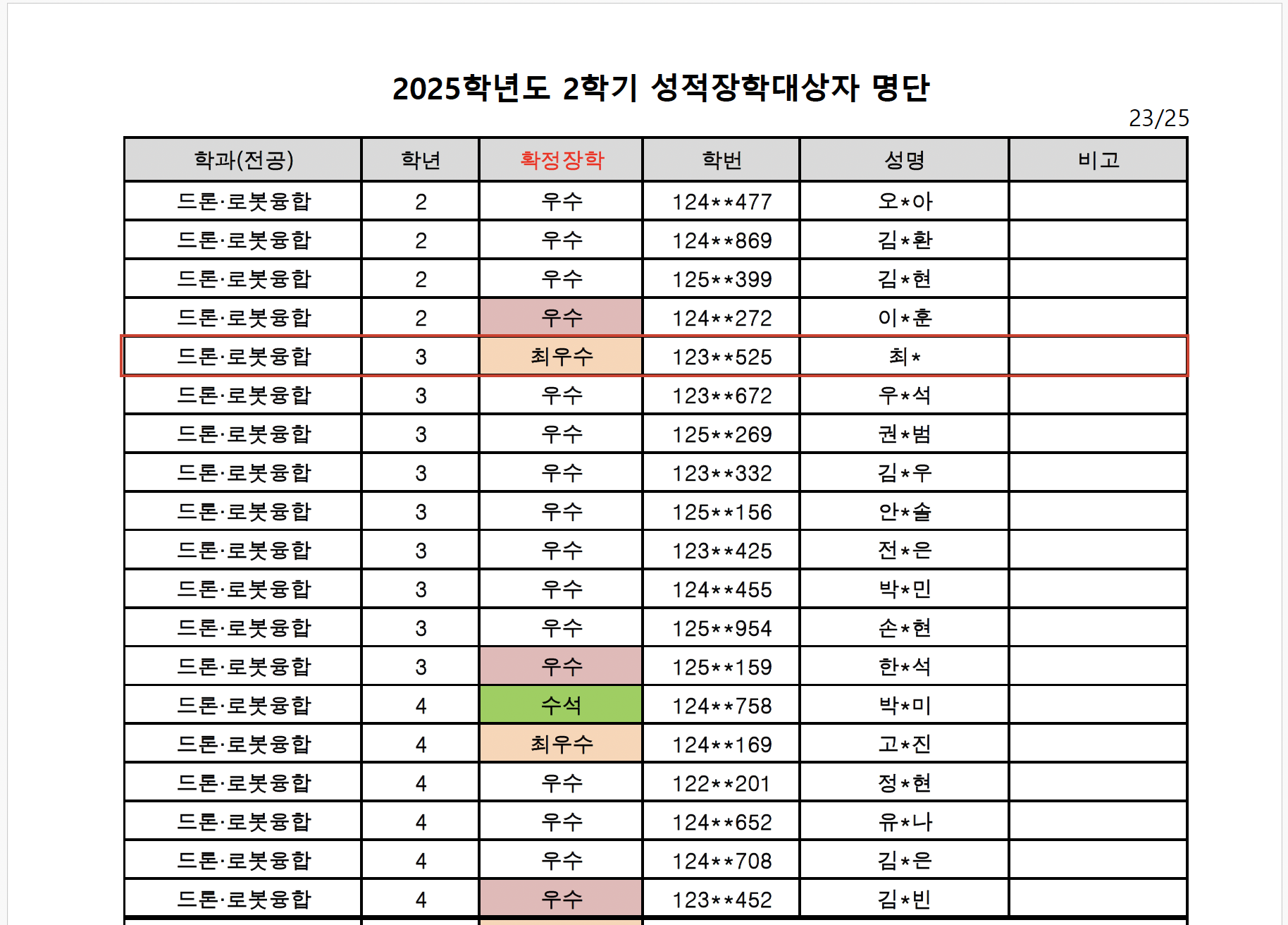 이번에도 우리 학과 3학년 중 최우수 학생으로 뽑혔다.