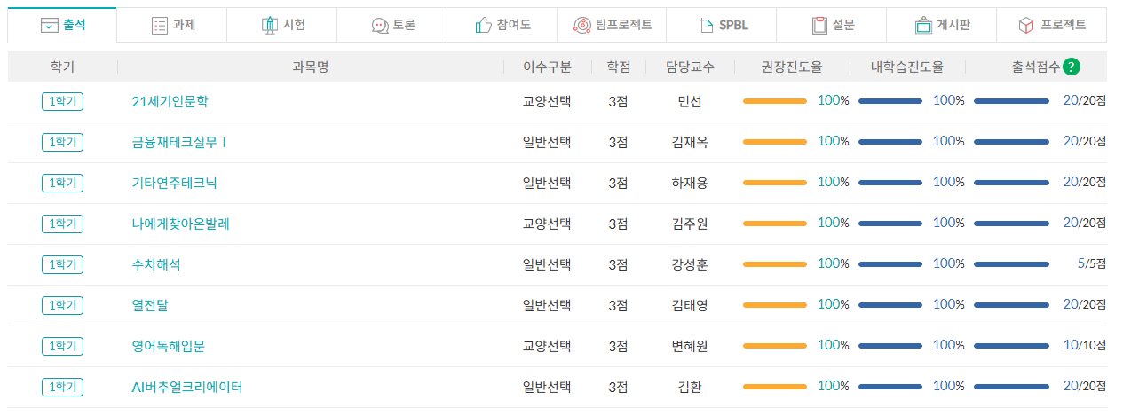 교양 과목 필요 학점을 다 채우긴 했지만 두세 과목 더 들어도 좋을 것 같다.