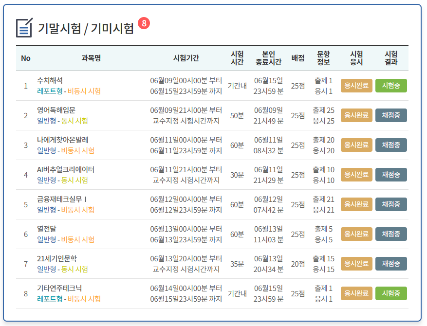 정규학기에 8과목을 수강하면 계절학기를 들을 수 없으므로, 2학기에 다시 시작한다.